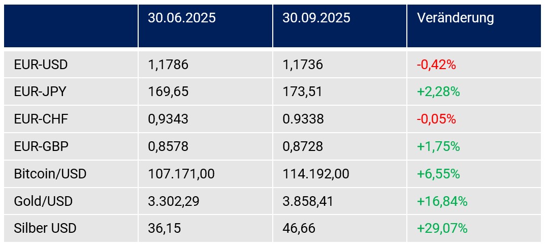 An den Finanzmärkten ergaben sich im Sommerquartal 2025 teilweise starke Neubewertungen.